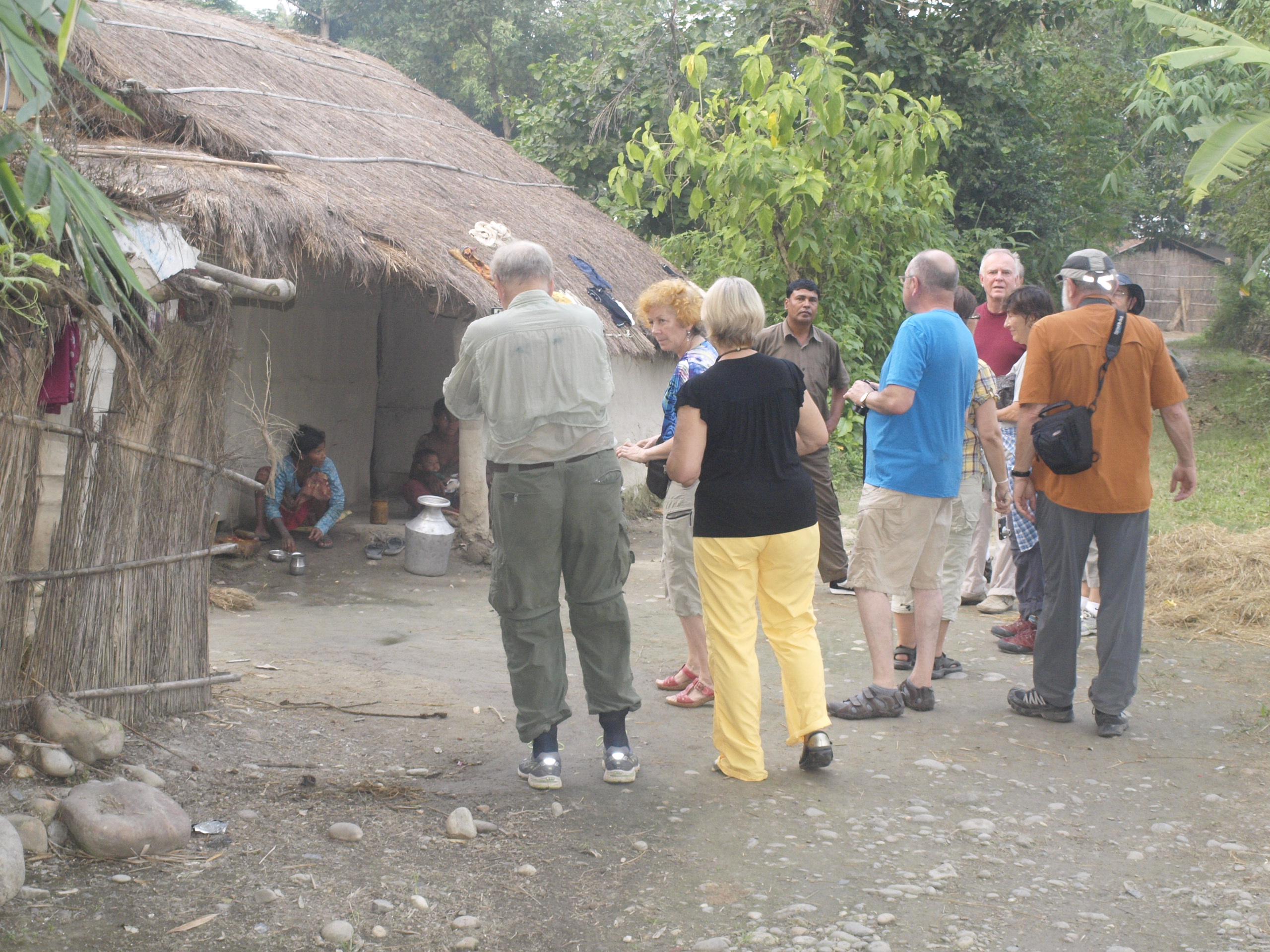 Po sniadanu w autobus i ruszylismy do Chitwan.Teren byl plaski rolniczy krajobraz.Ryz trzcina cukrowa , warzywa. Przejechalismy przez wiele malowniczych lecz biednych wiosek.Zatrzymywalismy sie aby skosztowac lokalne jedzenie. W koncu dojechalismy i przywital nas szyld ” Resort Island swidis Group”.Przedstawiciele wioski stali i czekali z naszyjnikami z kwiatow a my w kolko NAMASTE .lunch i nowy przewodnik NOBEL ( imie ) wzial nas na kapiel ze sloniami.Panie i panowie rzucili sie do wody i nikt nie myslal ze sa krokodyle w rzece.Zabawa byla pyszna. Po rozpakowaniu sie i chwili odpoczynku poslismy na spacer dookola wioski.Schludna mala wioska na skraju dzungli gdzie nosorozce , tygrysy i niedzwiedzie mieszkaja. Sliczny zachod i wieczorem pokazy lokalnych grup tanecznych. Dzien zakonczyl sie wspolnym tancem a potem bardzo pozno kolacja.