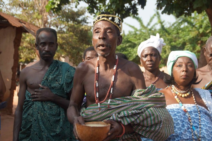 Około 60% mieszkańców Togo wyznaje religię zwaną Voodoo; wielu z nich uważa się również za katolików. Za wielkimi staraniami naszych przewodników dostaliśmy zaproszenie na taką właśnie plemienną ceremonię religijną. Przywitała nas rodzina królewska.