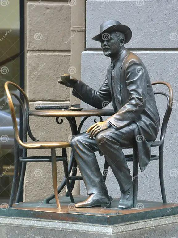 Moze lepiej i trafniej by bylo gdyby na ramieniu siedziala mu malpka z ktòra za zycia przechadzal sie po miescie, ale wtedy trzebaby go chyba bylo umiescic przed sklepem zoologicznym….a nie przed kawiarnia…….