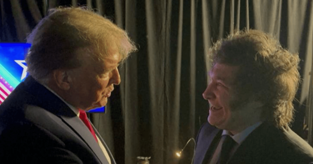 Argentyński prezydent Javier Milei spotkał się z byłym prezydentem USA Donaldem Trumpem na dorocznej Konferencji Konserwatywnej Akcji Politycznej (CPAC). Podczas spotkania, które uwieczniły kamery Trump mówi po angielsku: „Uczyńmy Argentynę znów wielką”, na co po hiszpańsku odpowiada Milei: „Niech żyje wolność, do cholery”.