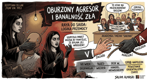 W egipskim arcydziele kinematografii z 1953 r. pt. Raya i Sakina, postać Rayi (grana przez Negmę Ibrahim z socjopatycznym dystansem) wypowiada kwestię stanowiącą dogłębną lekcję psychologii agresora. Wychodząc z piwnicy, w której właśnie zamordowała kobietę, Raya skarży się z autentycznym oburzeniem: „Kiedy ją dusiłam, ta kobieta ugryzła mnie w rękę! Można by pomyśleć, że byłam jej wrogiem!”.